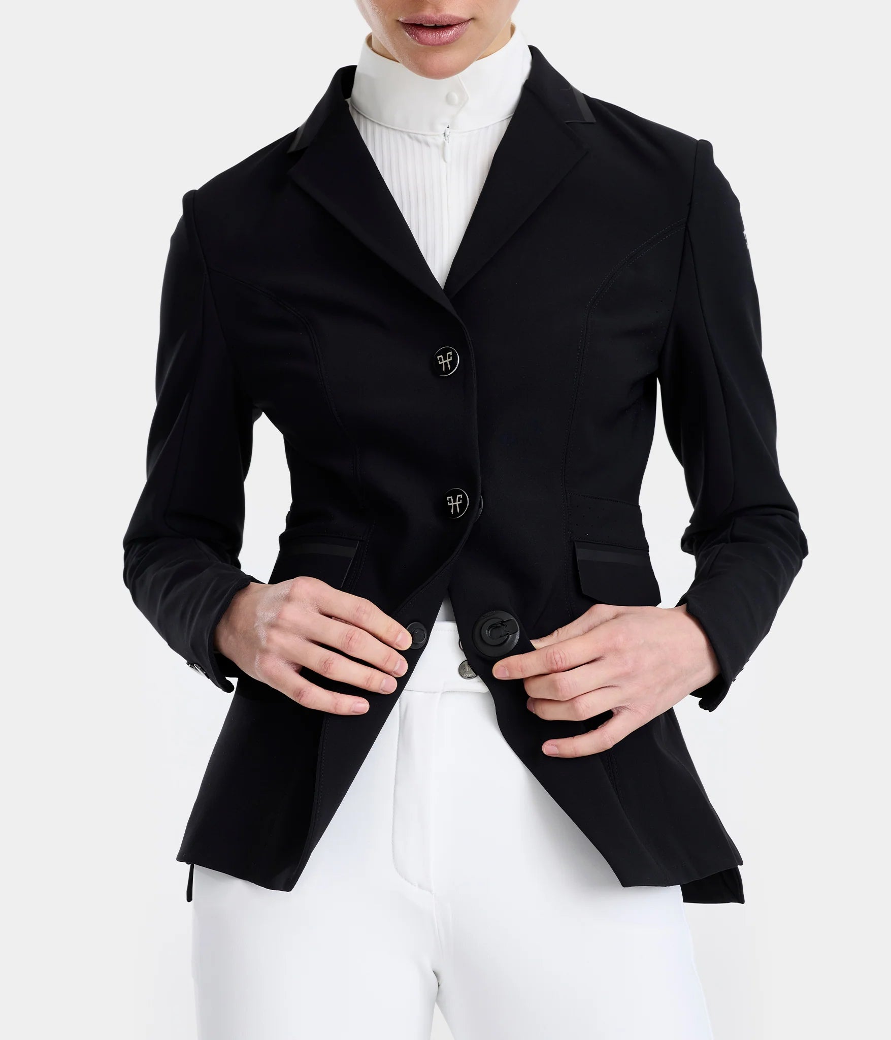 Enfin, parce que l’équitation est un sport d’engagement mais aussi un sport d’élégance, la bonne tenue de la matière et les lignes harmonieuses de la veste garantissent un beau tombé nécessaire à une veste de concours. Eco-conçue, la matière est certifiée OEKO-TEX® Standard 100 et tissée avec du nylon recyclé. En résulte, une veste conçue pour la performance et la rigueur de la compétition.