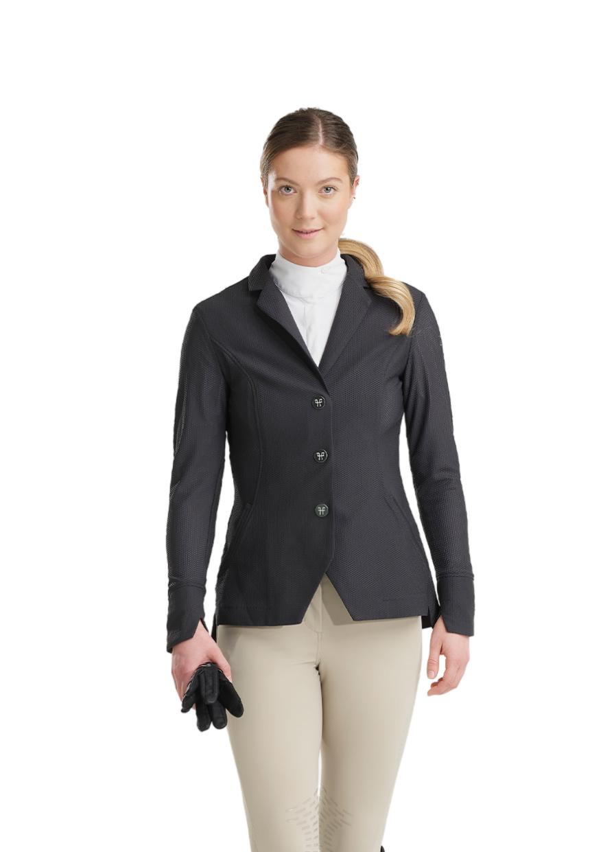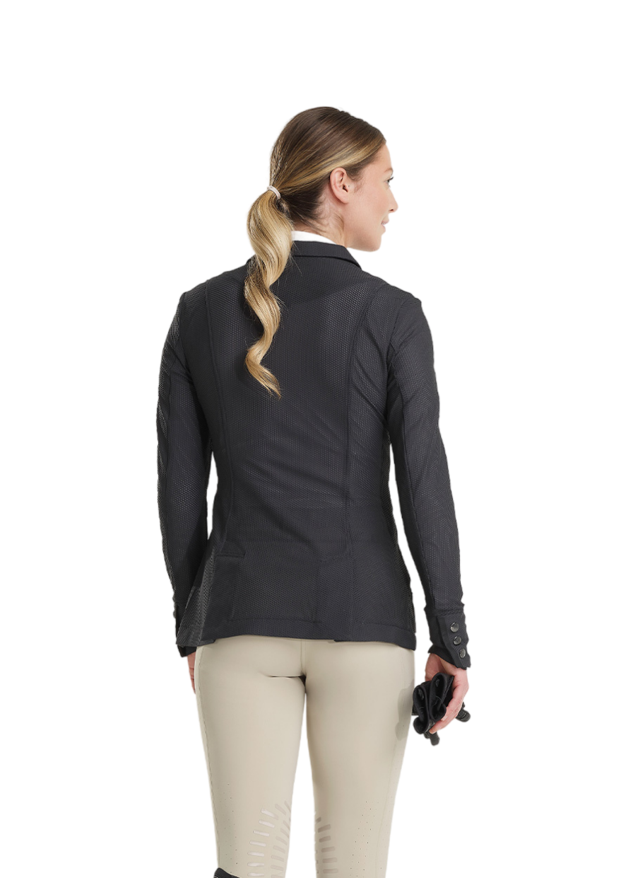 This show jacket has all the necessary technical features for competition riding. Cleaver design, with an ergonomically shaped fit that moves along with the rider. However the Aeromesh is made of a new fabric, which is both stretchy and very breathable, to meet the demands of riders who compete in hot conditions. Its micro-honeycomb structure allows heat to escape easily, for maximum rider comfort. The Aeromesh is so light, it's like a second skin - you'd almost forget you have it on! As well as the technical features, the collar has been redesigned in line with competition demands.