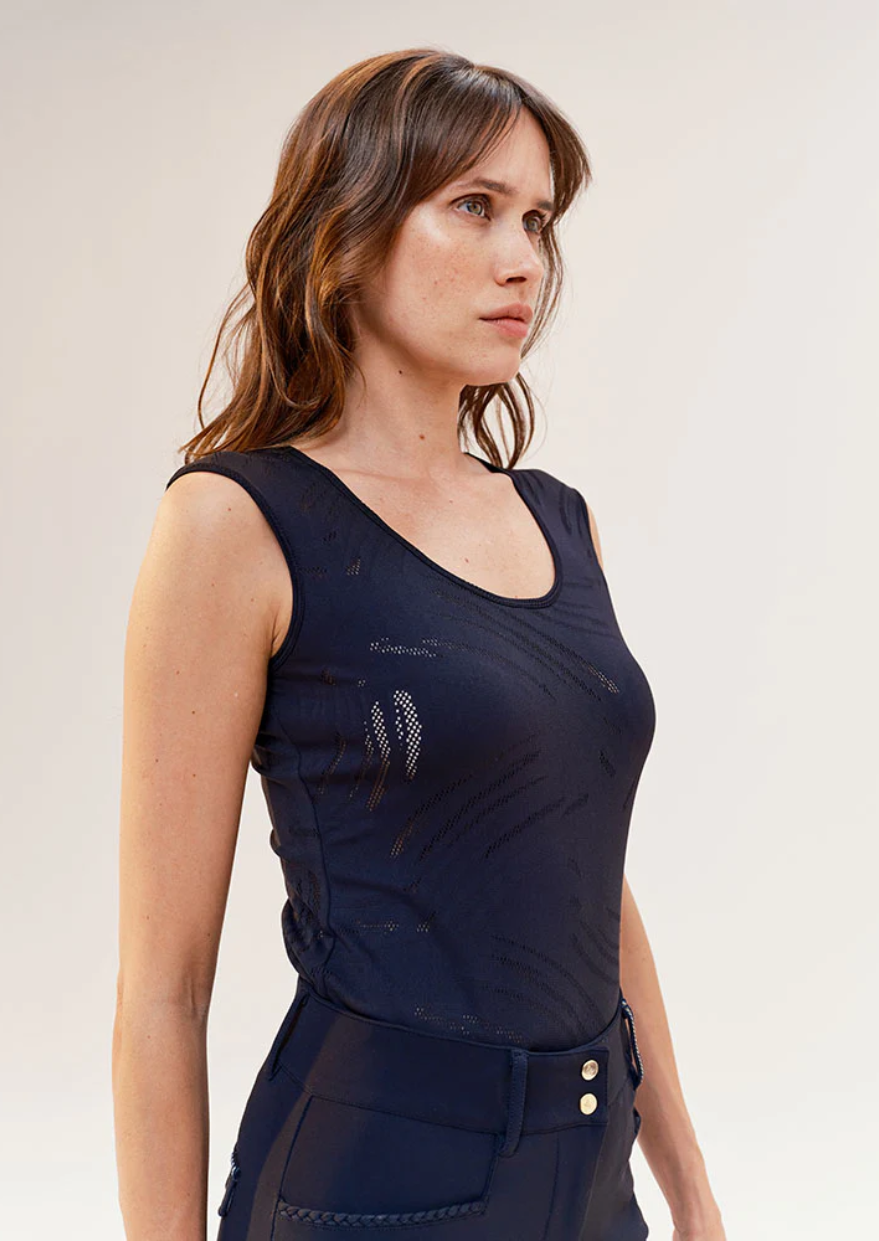 Bayadère is the essential bodysuit for riders seeking comfort and performance. Designed in a premium Italian fabric that's supple, breathable, and stretchy, it guarantees optimal freedom of movement. Combining elegance and technical features, this versatile bodysuit also adapts to a casual look for a sporty chic touch outside the stables.