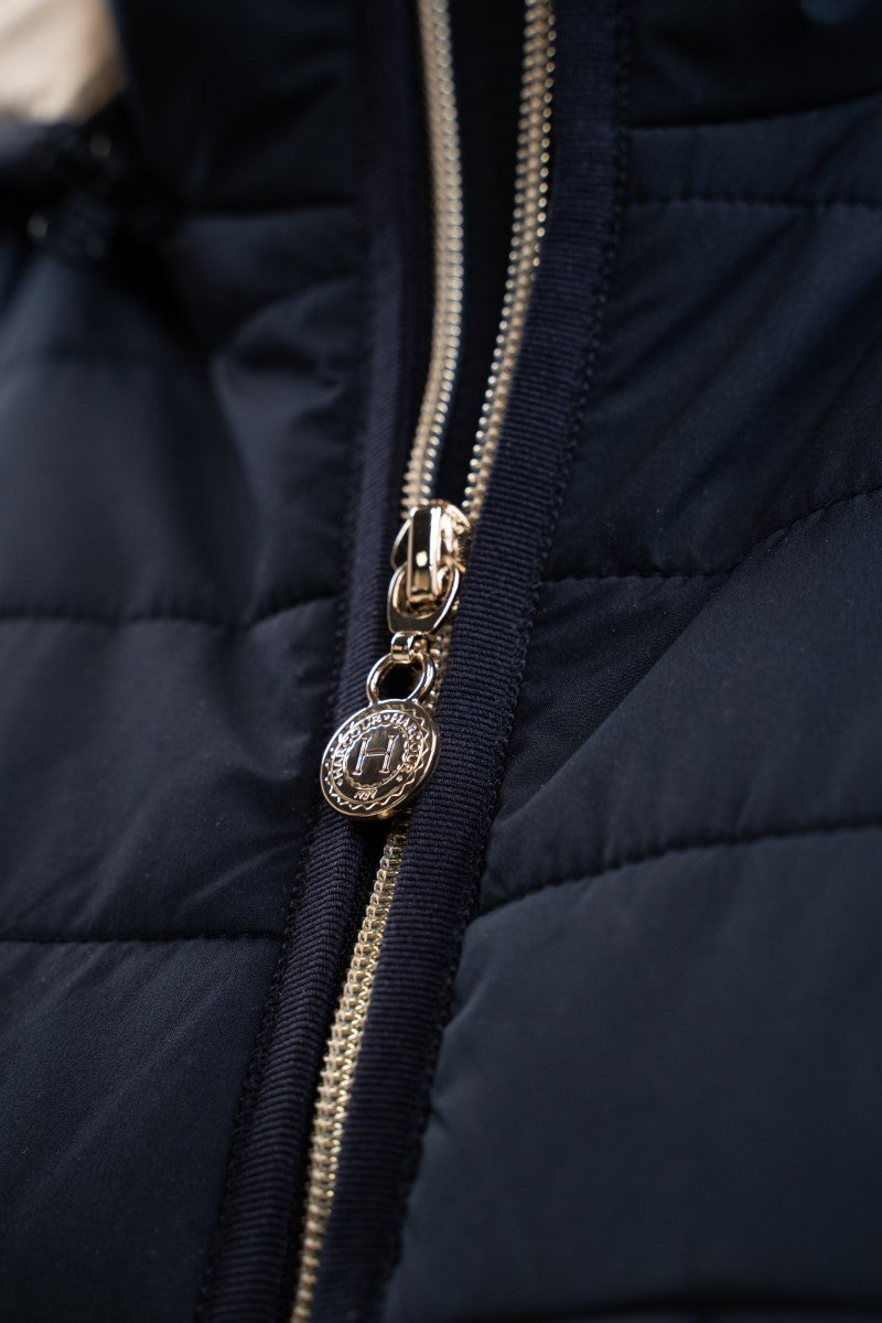 - Closure of the jacket by a gold double zip and a Harcour sweater