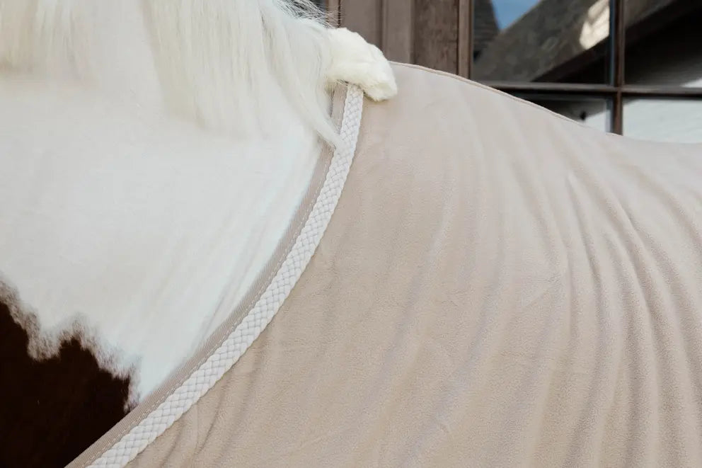 The fabric will dry your horse quickly and will transport moisture to the surface of the rug without cooling the horse too fast. This polyester fabric has the look and feel of real wool, but unlike wool, it's thinner and easier to brush off shavings. The Fleece Rug Plaited Rope is thinner than the Heavy Fleece Collection thanks to the only one layer of fabric.