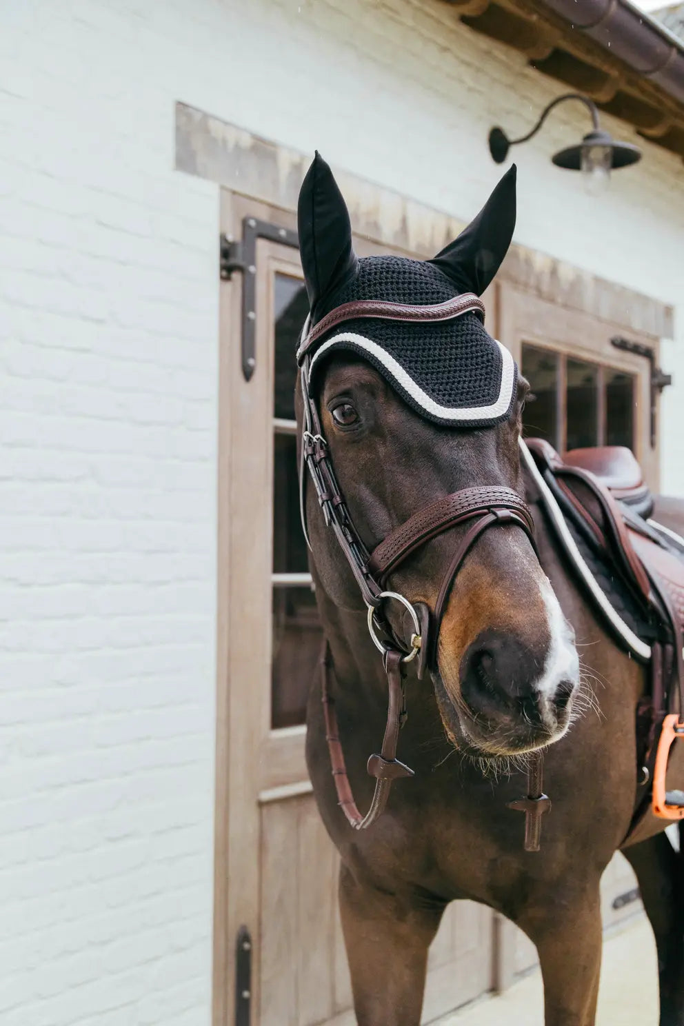 The perfect finish to a classic look, the Fly Veil Wellington Plaited Cord. It also protects the horse’s ears against flies while riding.