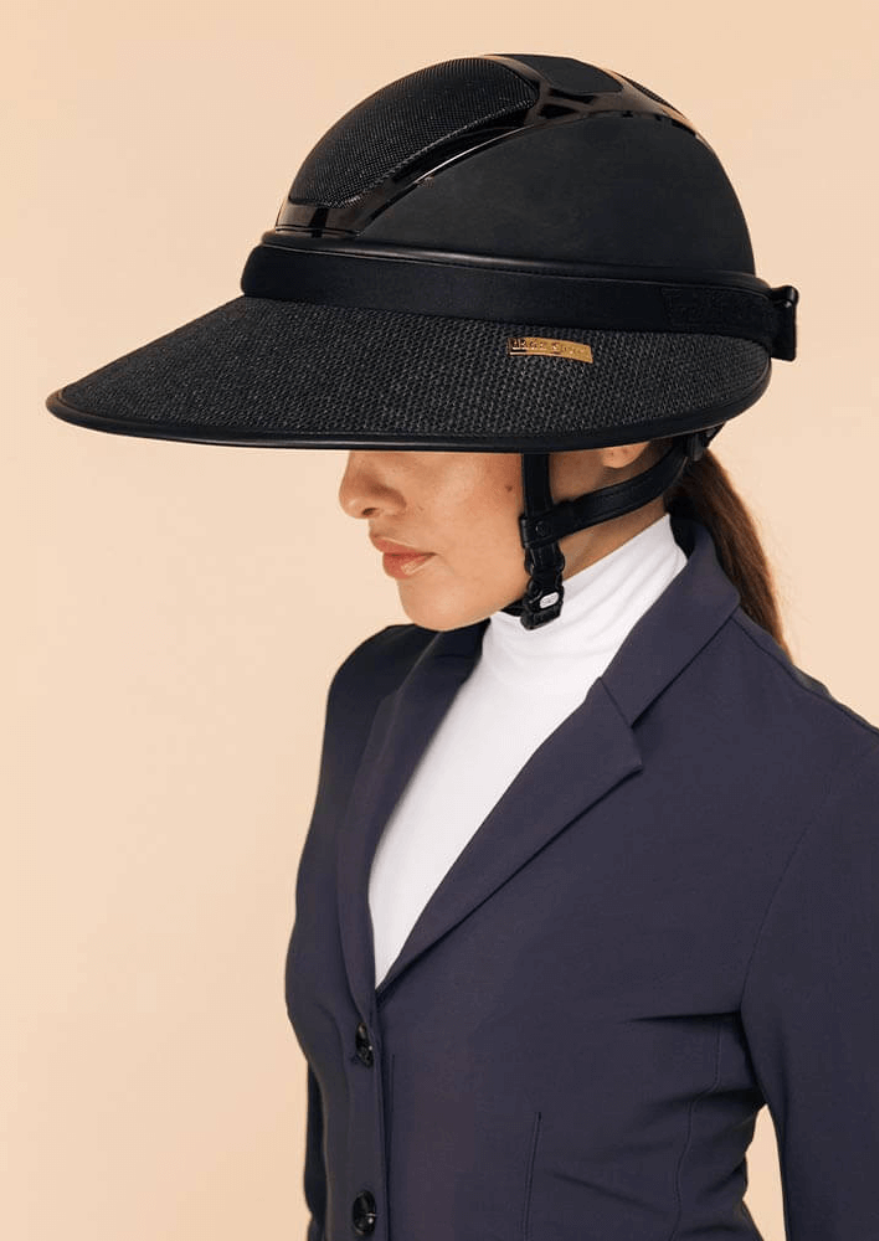 The cane visor has been designed to finalize the silhouette of the rider. Lined with canvas, it has a grip band designed with the DADA logo that allows the visor to stay in place on the helmet. The velcro straps allow you to adjust the size of the visor. It has been finalized with the integration of a golden Dada Sport plate on the left side of the visor.