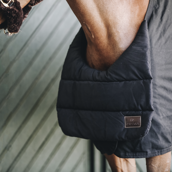 The Summer BIB is the ideal pad to protect your horse’s chest from rubs caused by rugs. It is a pad that exists out of two flaps which you put over the front of the rug where the front closures are. One flap will be on the inside of the rug, directly against the chest of the horse. The other flap then hangs on the outside of the rug to keep the BIB in place. Both edges of the BIB have notches to make sure the BIB stays in place.