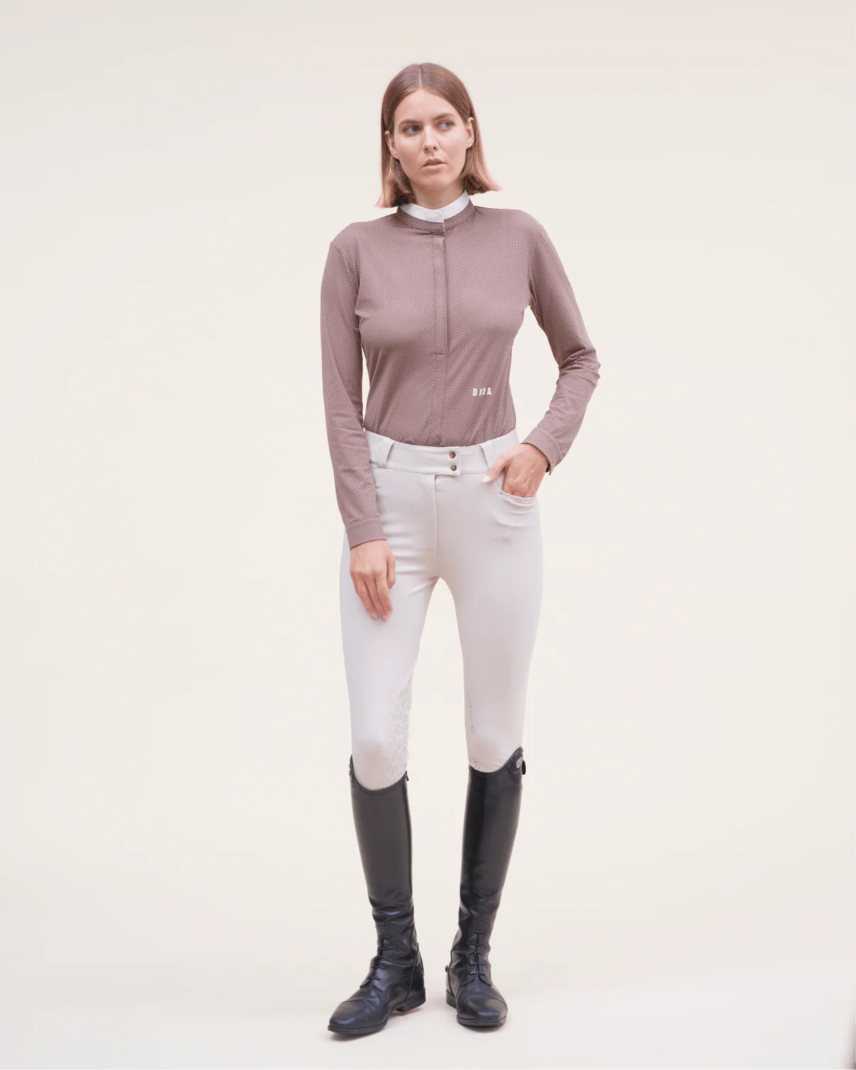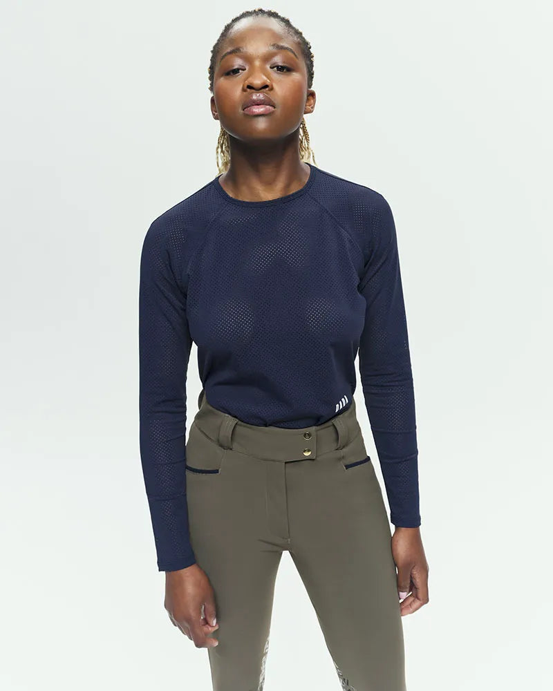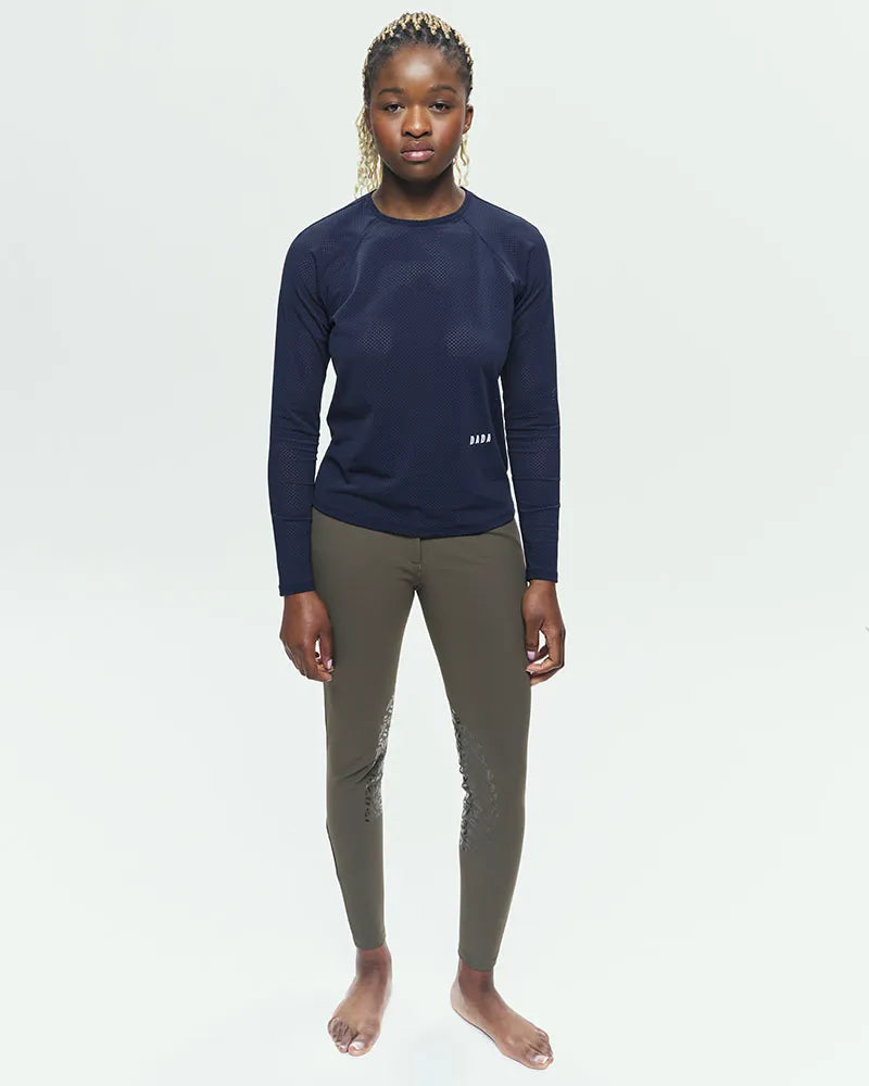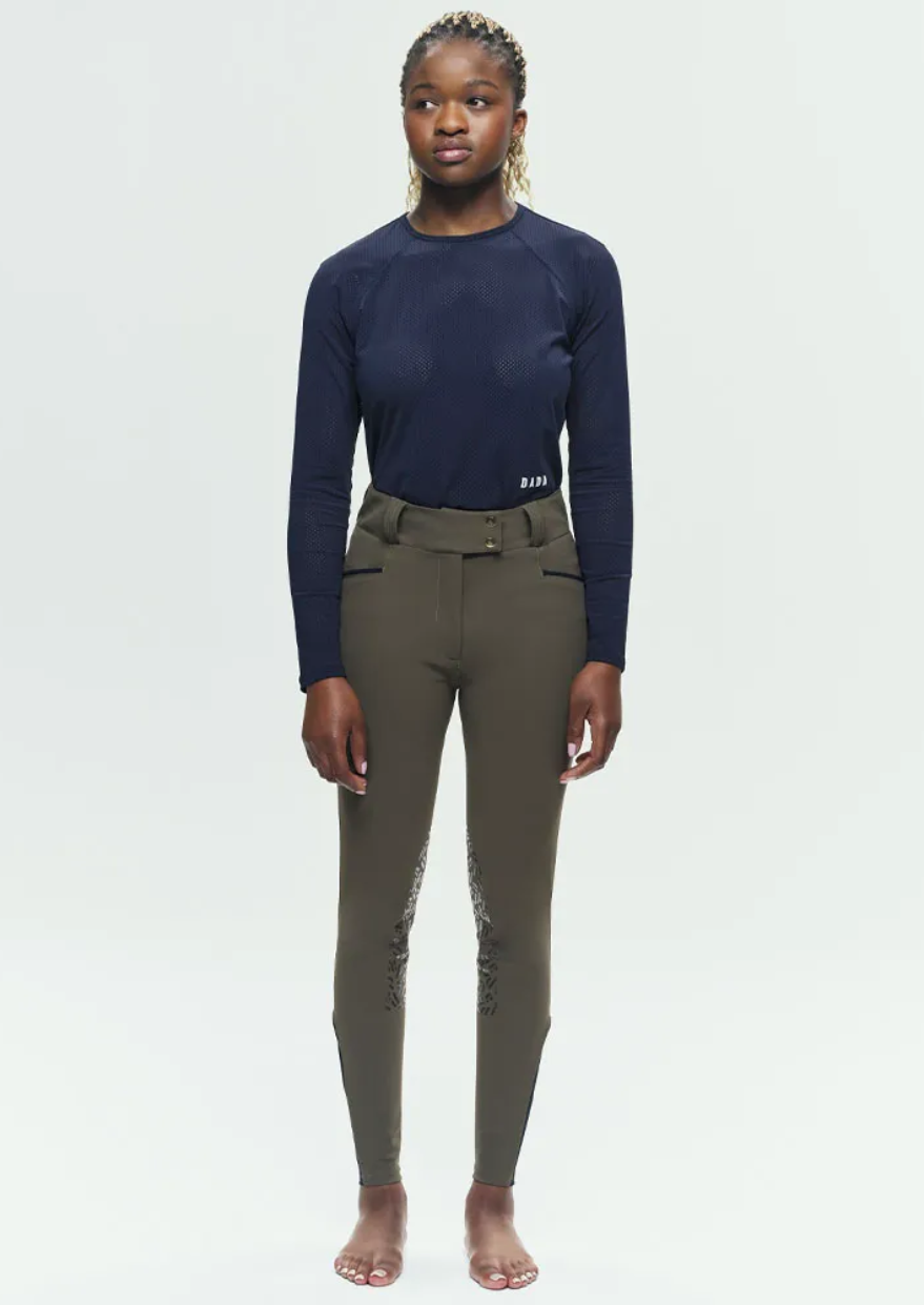 High-waisted equestrian riding pants with grips, designed by women for women, combining uniqueness and durability. Its cut elongates the leg and enhances the silhouette. Made from premium materials and available in exclusive colors, the Kit New embodies timeless style and exceptional longevity. Renowned for its unmatched comfort, thanks to a sculpting fabric and strategically placed seams for a flattering fit.