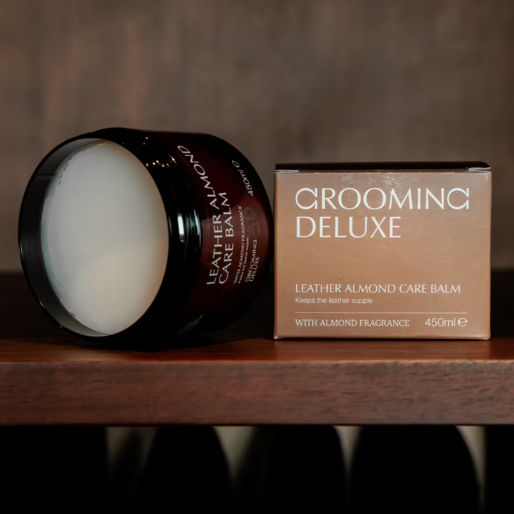 Pamper your leather goods with the Grooming Deluxe Leather Almond Care Balm, an advanced solution designed to nourish, protect, and prolong the life of your leather. Infused with a subtle almond fragrance, this balm offers premium care to maintain the elegance and durability of your leather equipment.