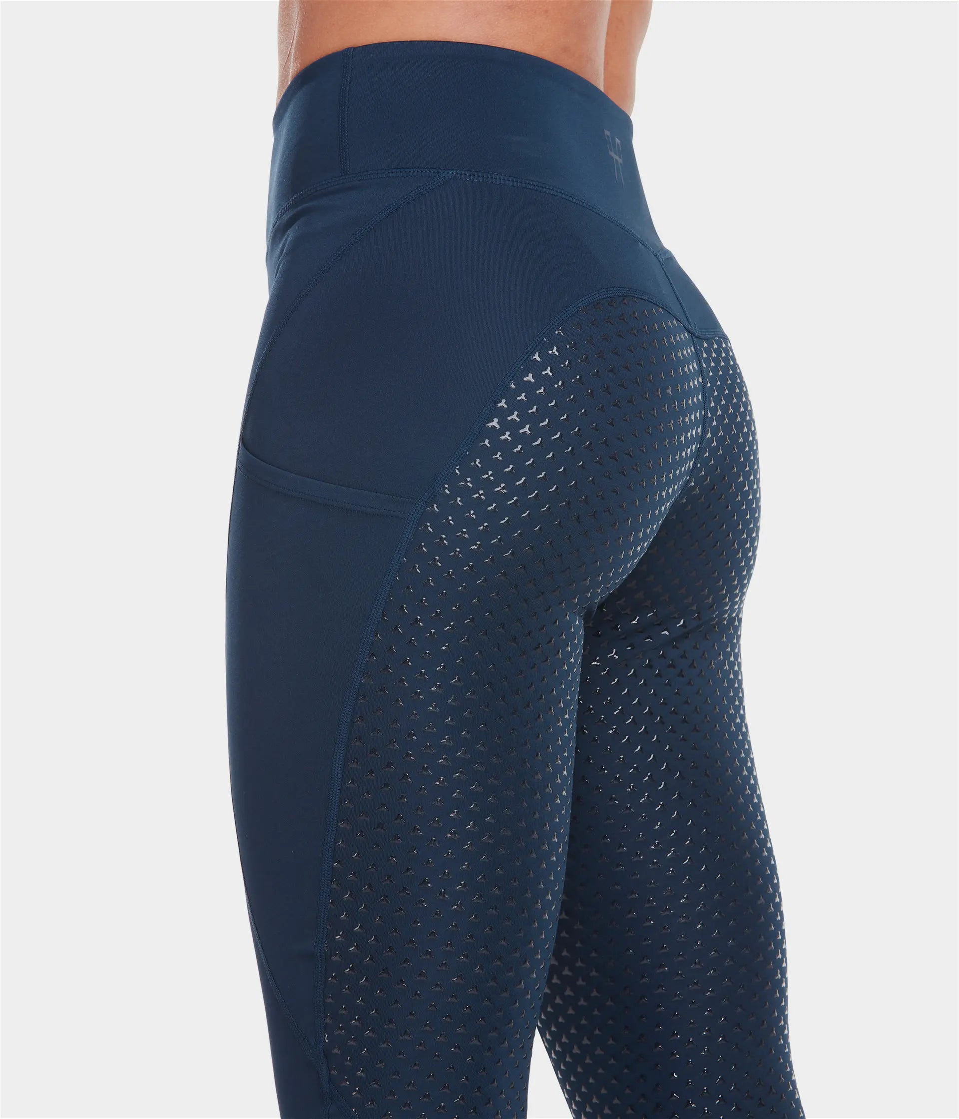 Made from a sheer, stretchy fabric with 16% elastane, these leggings adapt perfectly to your body shape and provide moderate muscle support. During intense exertion, the polyester efficiently wicks away perspiration and dries quickly for increased breathability. The high, elastic waist has a thin, wide elastic band for optimum support and greater comfort. The seat grip provides better support and protects the fabric from friction. There's a pocket on each thigh for added functionality while riding. The eco-friendly material is OEKO-TEX® Standard 100 certified.