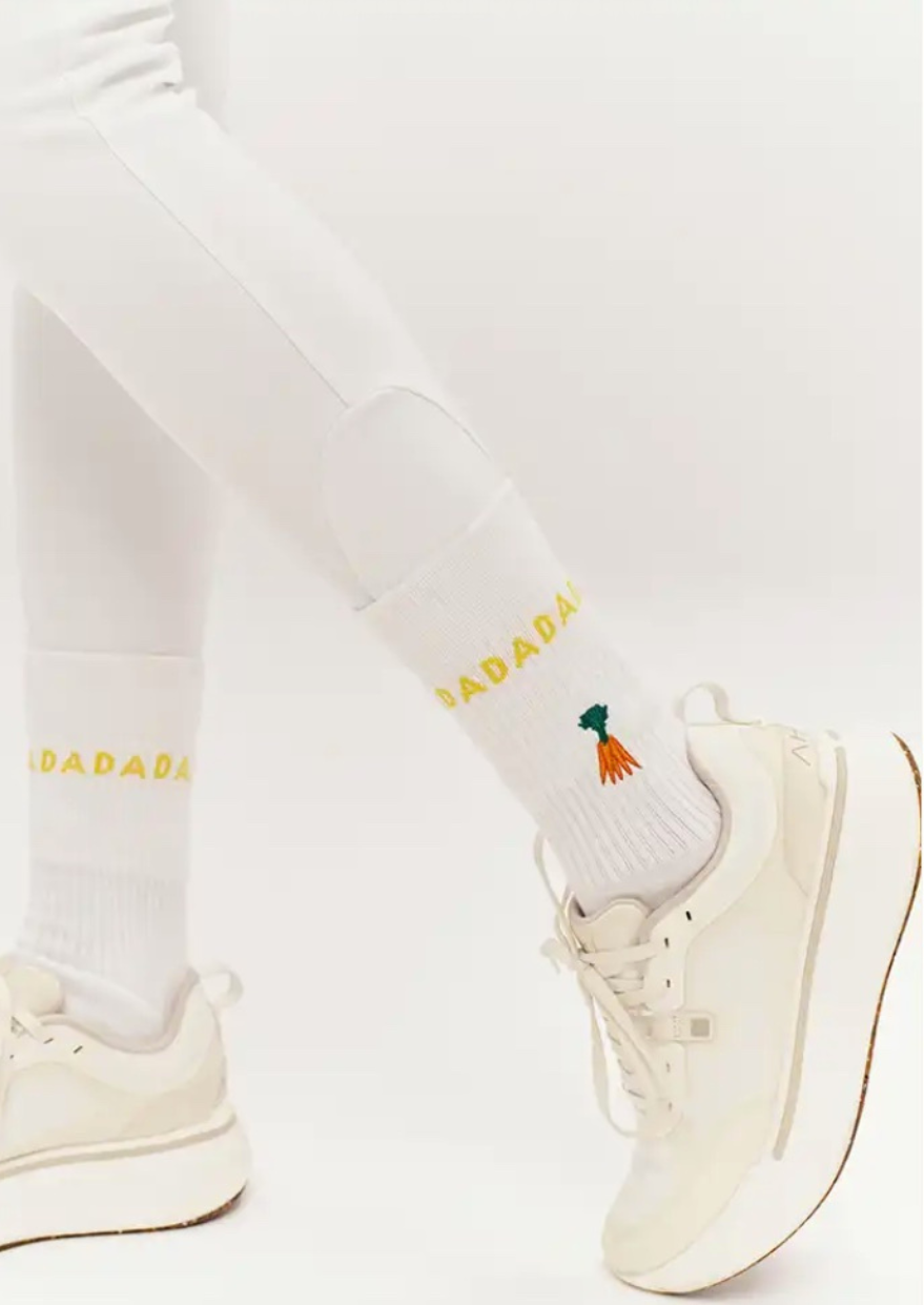 Dada’s take on caj socks: light, soft, full of spirit. Slip them into your sneakers between two rides. The extra touch? Delicate embroidery details, like lucky charms – tiny carrot bots, a horse head, a horse shoe, a sunflower or a four-leaf clover.