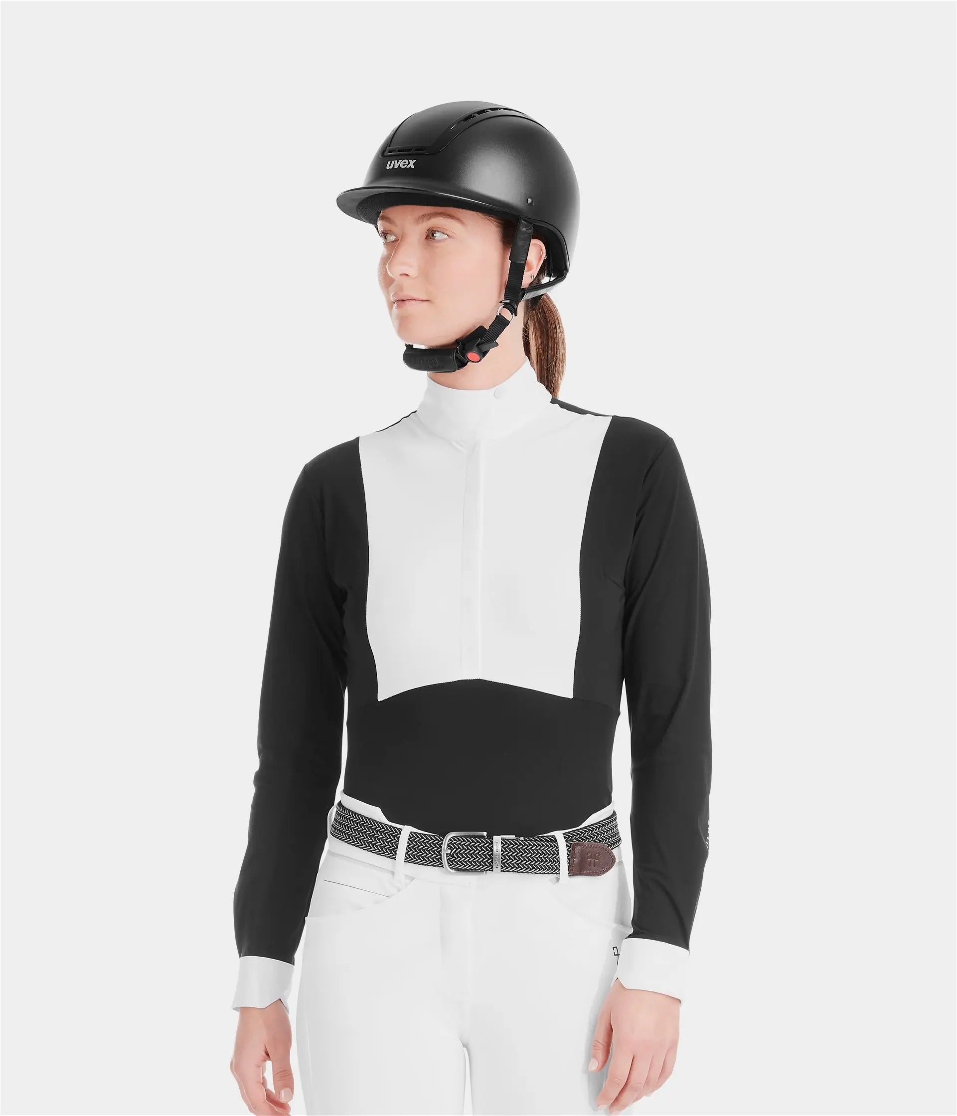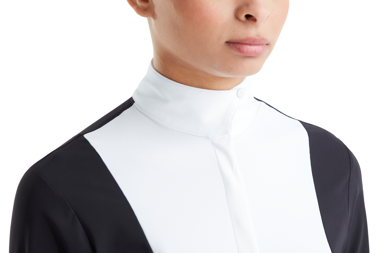 With its ergonomic cut-outs, this shirt adapts perfectly to the body's movements. The shape of the wrist and collar has been specially developed to free up the rider's movements. Made of a 4-way stretch fabric and equipped with Horse Pilot's UV-Block technology, the shirt offers optimum comfort and protection. The micro-perforated area in the back is highly breathable and efficiently dissipates heat during intense efforts.
