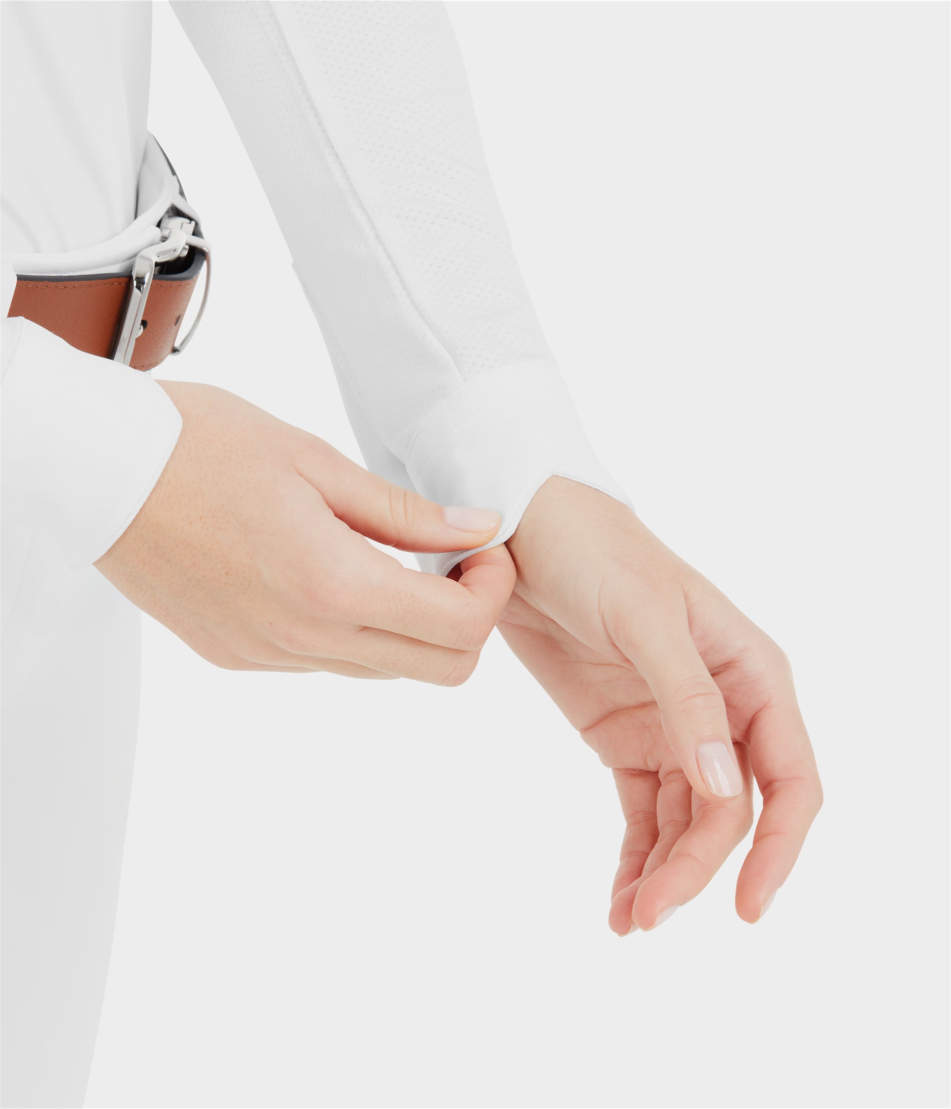 Dual-stretch with ergonomic cut-outs, the Aerolight shirt has been designed to give riders optimum freedom of movement. The shape of the wrist has been designed so that the rider can move freely on horseback. The neckline meets competition requirements and opens with a magnetic button for a minimalist look.