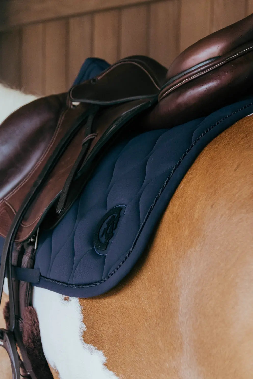 This Saddle Pad is made from a blend of high-quality and breathable fabrics to ensure durability of the product but also comfort for your horse. The inner lining features advanced moisture-wicking technology to keep your horse's back dry