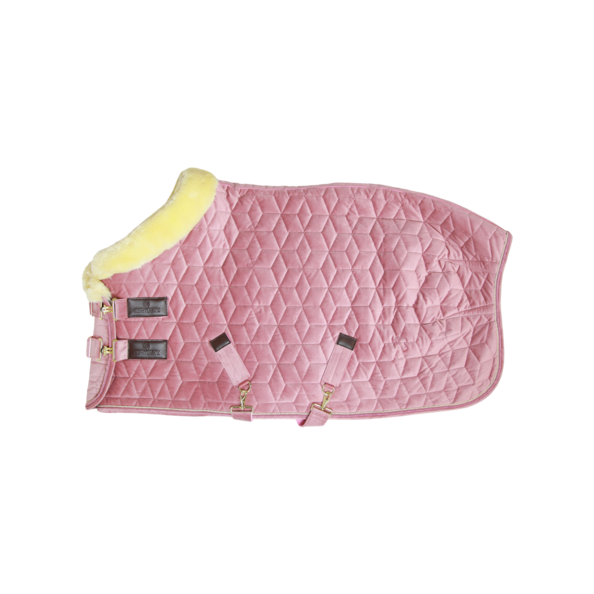 With the Show Rug Velvet you will for sure stand out in the stables. The rug has a 160g filling and is perfect during winter to use as a stable rug at home or at shows. The outside of the rug has a soft and chic velvet fabric and a sophisticated quilted layer. The cube quilted layer makes it a lot harder for horses to tear the rug. The inside of the rug has an artificial rabbit skin lining, that avoids rubbing marks. The artificial rabbit skin also creates tiny air pockets that create an isolated layer around your horse and keeps him extra warm.