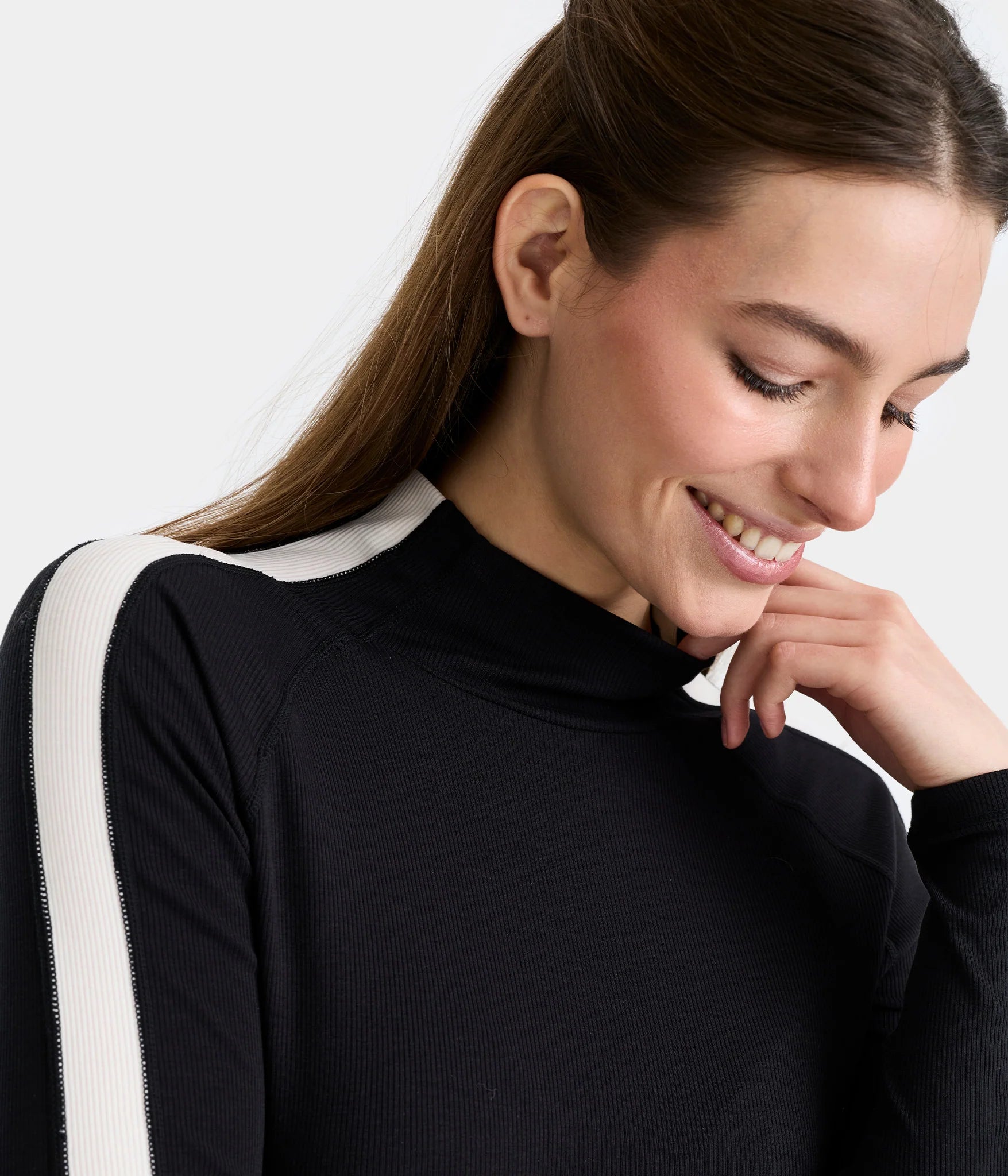 The side stripes structure the garment's line and add a modern, dynamic touch, while the discreet logos emphasize a simple, elegant aesthetic. Designed for performance, this T-shirt features UV protection to protect the skin during outdoor training.