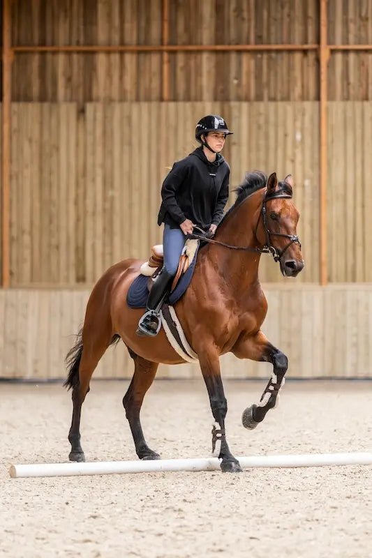 A wide fit with low armholes for ease of movement. Use the side zippers to adjust the shape of the sweatshirt to suit your needs. A loop holds the hood’s drawstrings in place so they don’t move when you're riding. Made from partially recycled eco-designed polyester fibres and Tencel, an eco-friendly fibre. These two types of fibres ensure that the fabric is breathable and quick-drying for more active exercise. Tencel, an eco-friendly cellulose fibre, also adds softness for greater comfort.