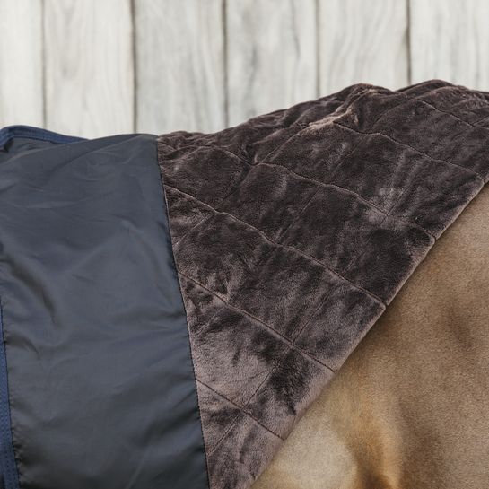 The waterproof pro has a 1680D outside fabric in a canvas look. This polyester outside is super strong, durable, and dirt-repellent. Thanks to the PU waterproof coating (ISO 10.000mm), a dry horse is guaranteed. The 300g filling is a PES fiber fill, which is warm and breathable thanks to the multiple layers in which the air can circulate. The inside of the Turnout Rug All Weather Waterproof Pro is lined with Kentucky's signature artificial rabbit skin. This prevents rubbing marks and works as an extra isolating layer next to the fiber fill.