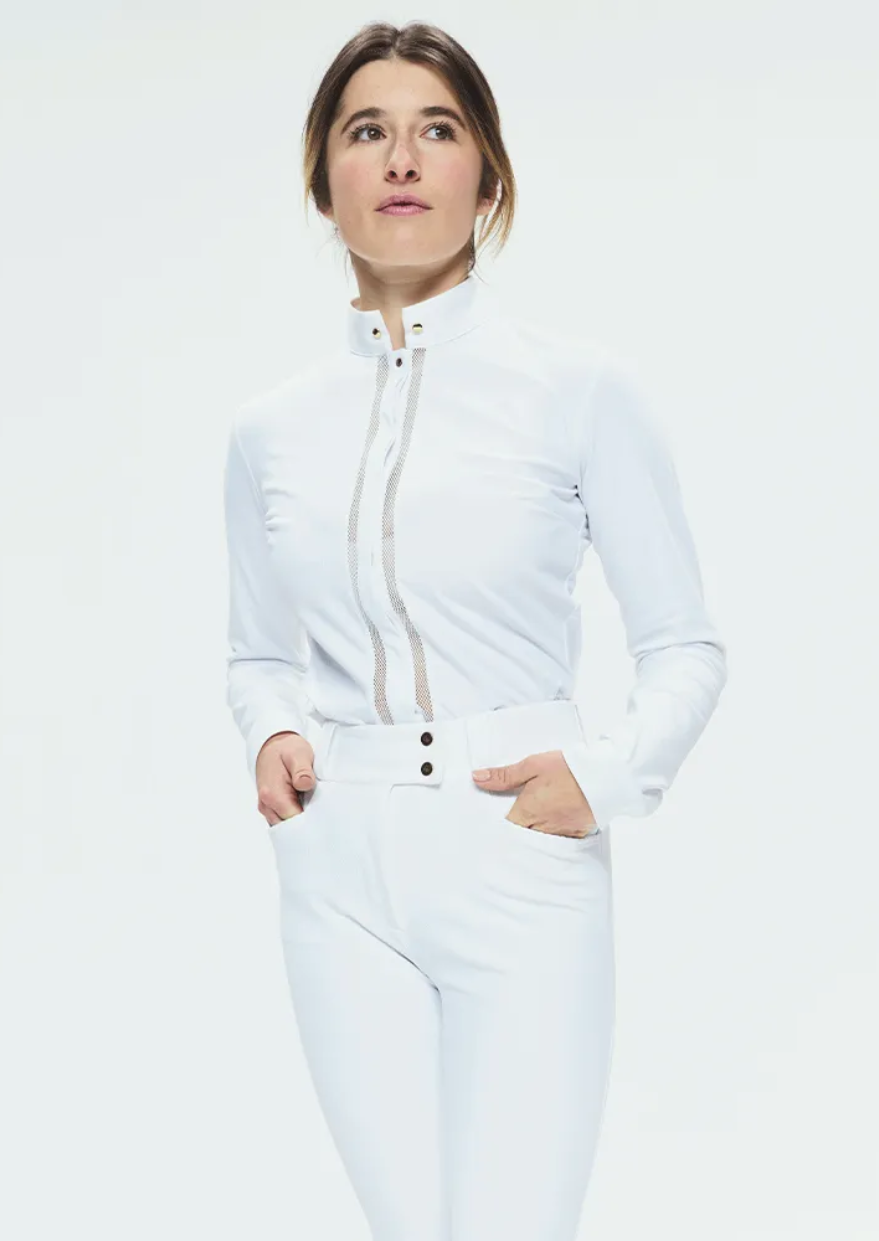 The button placket is surrounded by lace strips reminiscent of Ratina shirt, our previous competition shirt.