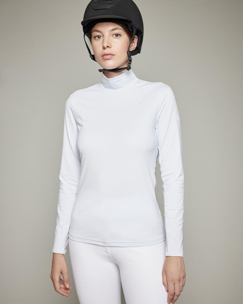 Visconti is the new long-sleeved technical T-shirt with chimney collar. Its slim, slim-fitting cut and tulle underarm inserts make it an essential part of the modern rider's wardrobe.