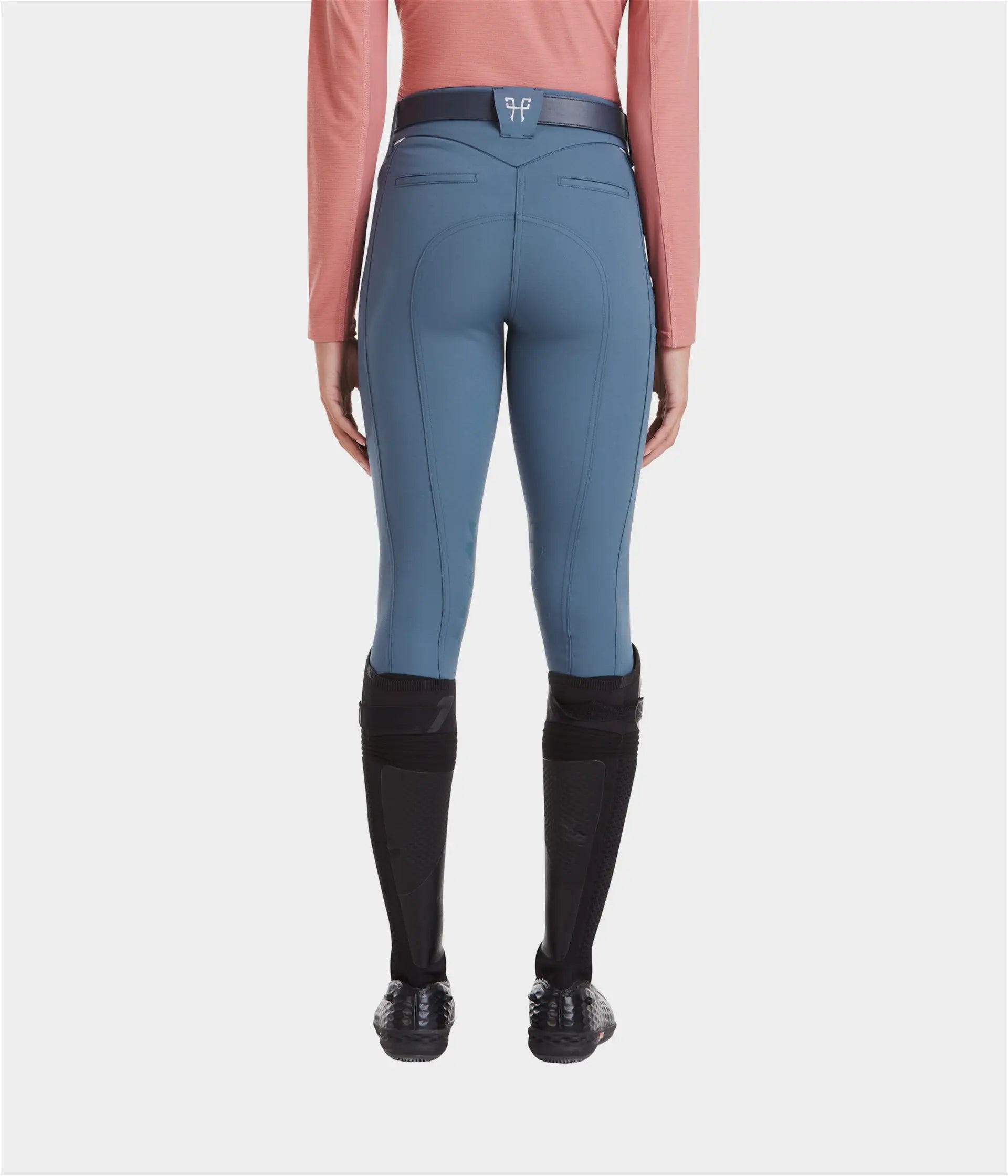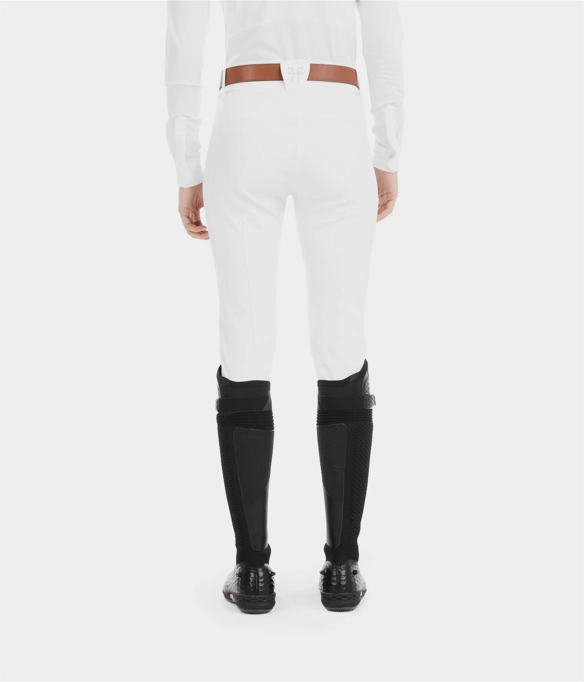 The waistband is higher in the back and lower in the front for an ergonomic fit. Inner knee grip enhances stability and protects against abrasion. The result? A breech that moves with you, ensuring optimal freedom in the saddle.