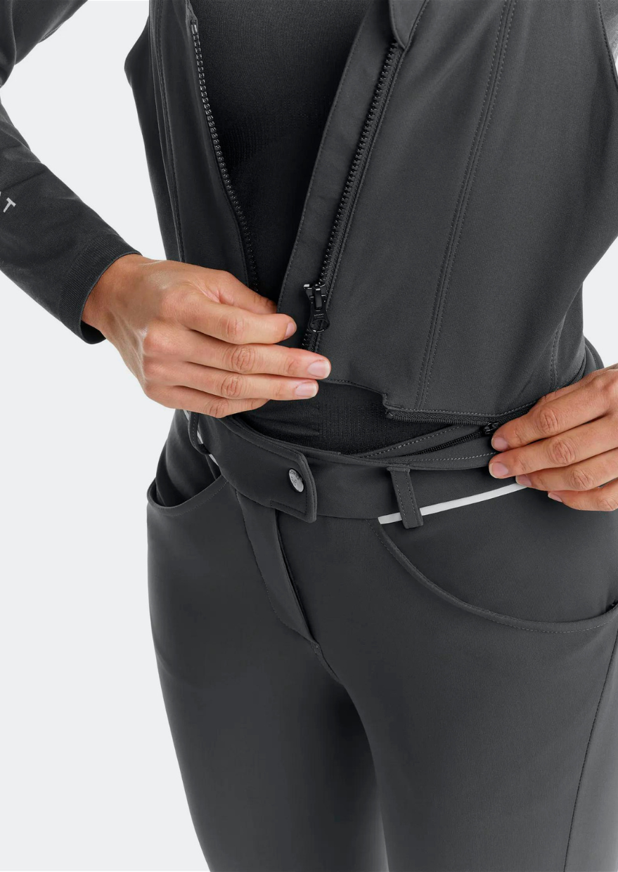The result is an innovative and warm pant that can withstand light rain. With its ergonomic cut and preformed legs it adapts to the rider's movements like a second skin for optimal freedom of movement. To limit friction zones, there is no more seam at the crotch. The compression zone in the calf area promotes better muscle recovery.